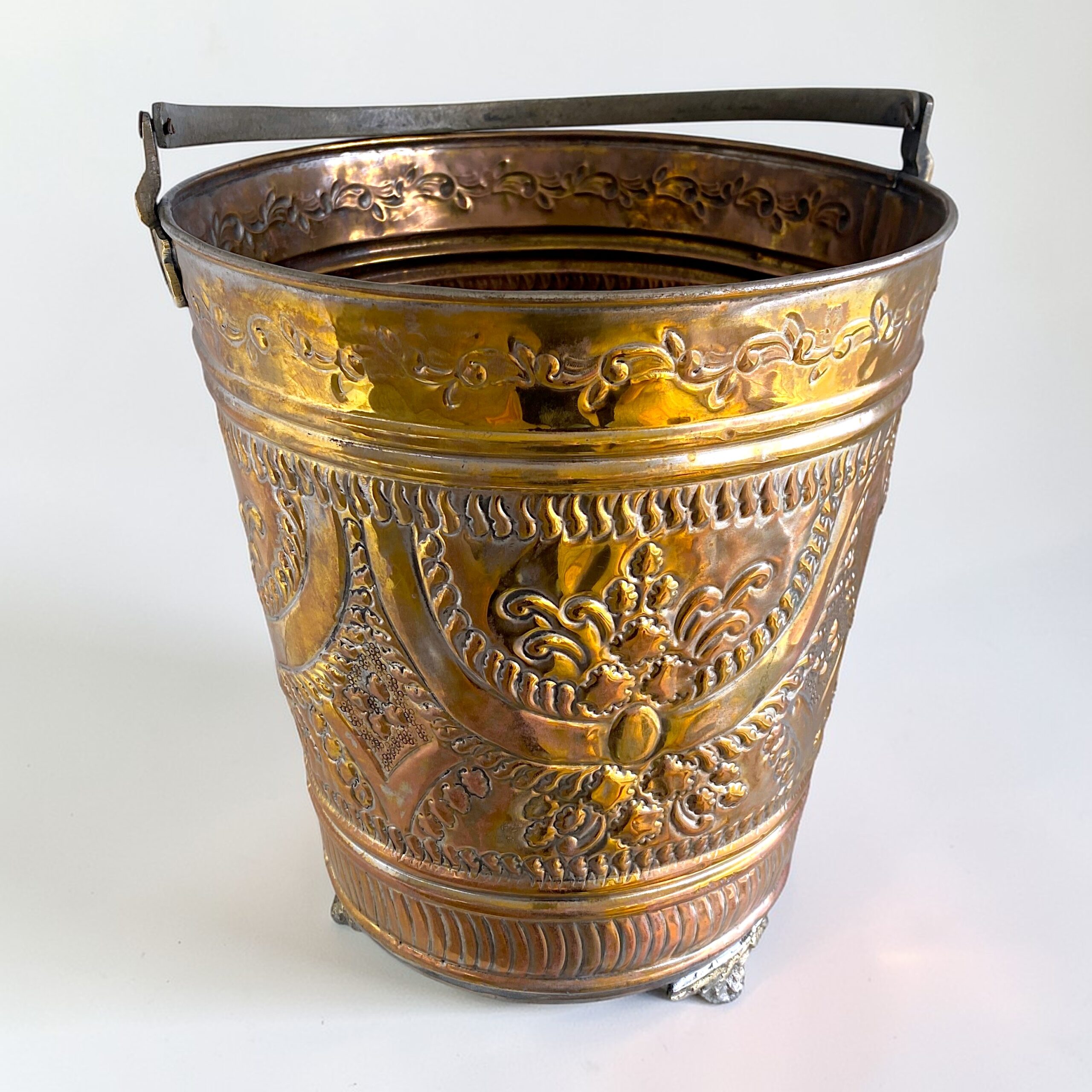 Patina og små brugsspor understreger spandens vintagekarakter og fortæller en historie om tidligere brug. Det er netop disse detaljer, der gør den til et unikt fund – ikke blot en genstand, men et stykke historie med sjæl.