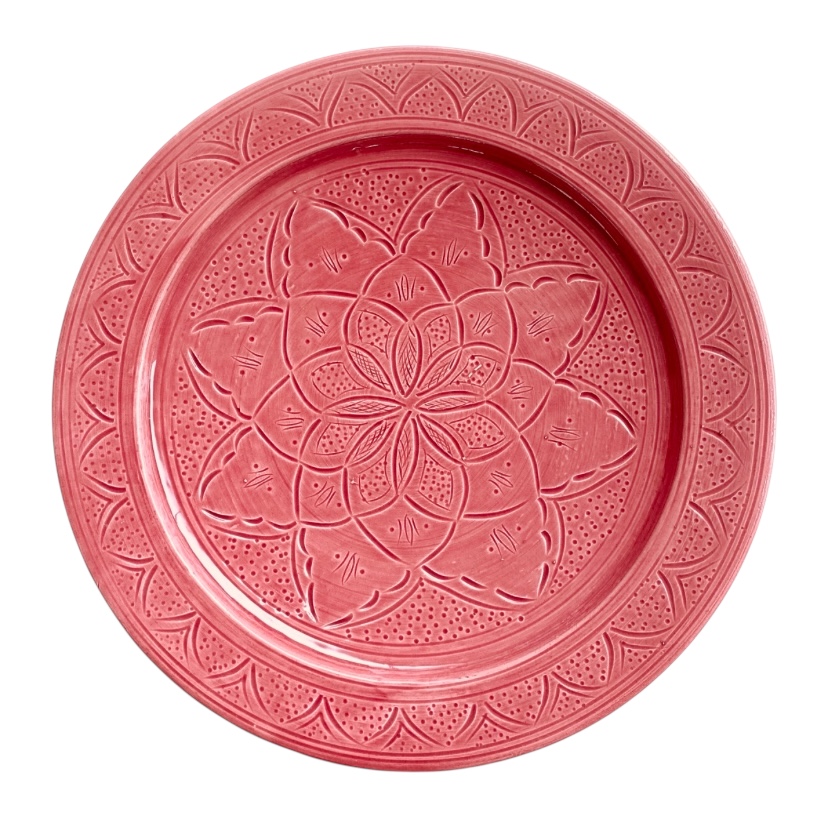 Håndværkerne der laver disse fade har hvert deres traditionelle design fra de egne de kommer fra i Marokko.