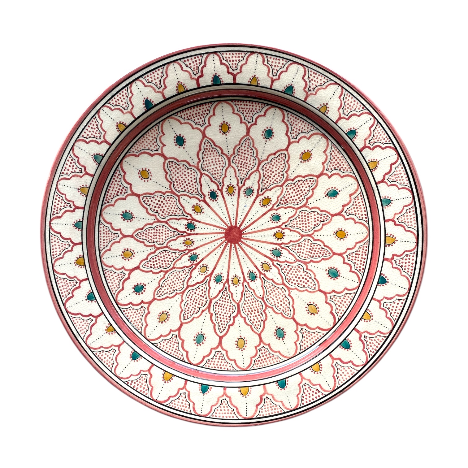 Håndværkerne der laver disse fade har hvert deres traditionelle design fra de egne de kommer fra i Marokko.