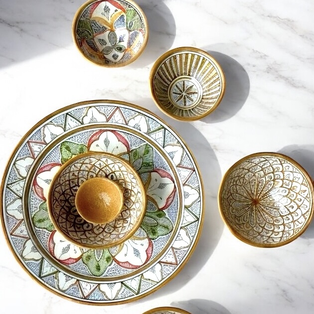 I Marokko bruges fadene og skålene både til servering af lækre traditionelle retter og som smukke vægdekorationer.