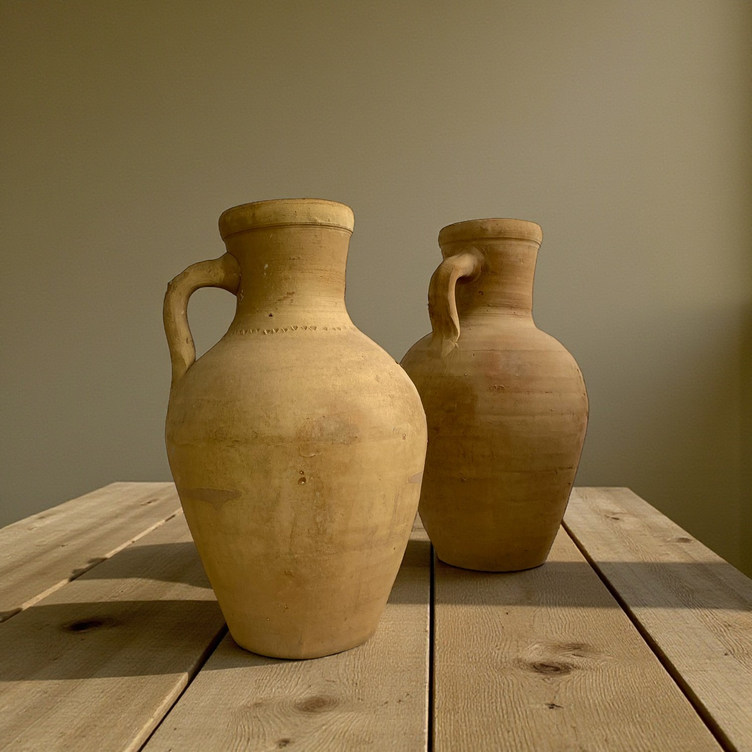 Bring et strejf af nordafrikansk håndværk ind i dit hjem med denne smukke marokkanske keramikkande. Hver kande er hånddrejet af naturligt ler og brændt på traditionel vis, hvilket giver den et varmt, rustikt udtryk og en unik overflade med små variationer – netop det, der gør den helt særlig.