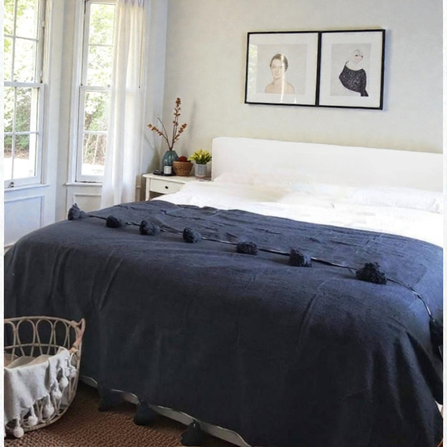 Marokkansk Pompom Plaid i Bomuld – Håndvævet sengetæppe & sofa-plaid